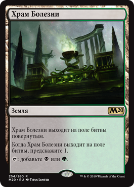 | Rules | Temple of Malady enters the battlefield tapped. When Temple of Malady enters the battlefield, scry 1. : Add or . |