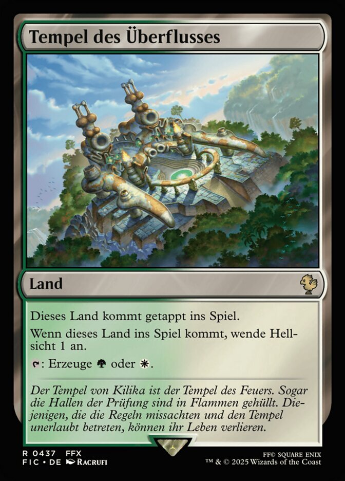 | Rules | Temple of Plenty enters the battlefield tapped. When Temple of Plenty enters the battlefield, scry 1. : Add or . |