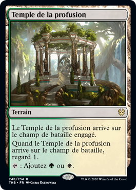 | Rules | Temple of Plenty enters the battlefield tapped. When Temple of Plenty enters the battlefield, scry 1. : Add or . |