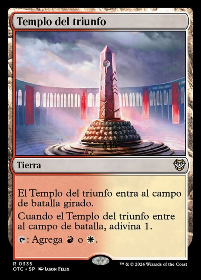 | Rules | Temple of Triumph enters the battlefield tapped. When Temple of Triumph enters the battlefield, scry 1. : Add or . |
