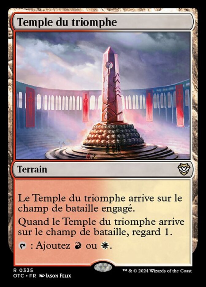 | Rules | Temple of Triumph enters the battlefield tapped. When Temple of Triumph enters the battlefield, scry 1. : Add or . |