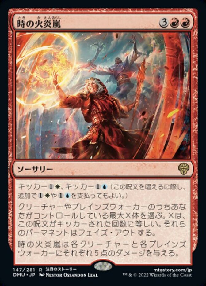 | Rules | Kicker and/or (You may pay an additional and/or as you cast this spell.) Choose up to X creatures and/or planeswalkers you control, where X is the number of times this spell was kicked. Those permanents phase out. Temporal Firestorm deals 5 damage to each creature and each planeswalker. |