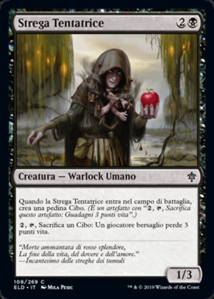 | Rules | When Tempting Witch enters the battlefield, create a Food token. (It's an artifact with ", , Sacrifice this artifact: You gain 3 life.") , , Sacrifice a Food: Target player loses 3 life. |