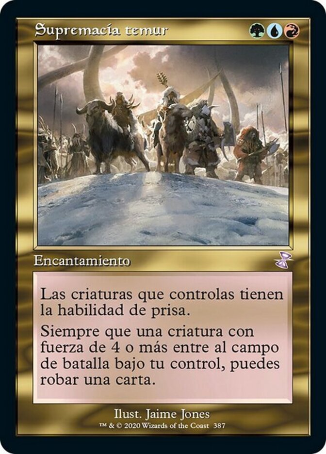 | Rules | Creatures you control have haste. Whenever a creature with power 4 or greater enters the battlefield under your control, you may draw a card. |