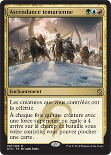 | Rules | Creatures you control have haste. Whenever a creature with power 4 or greater enters the battlefield under your control, you may draw a card. |
