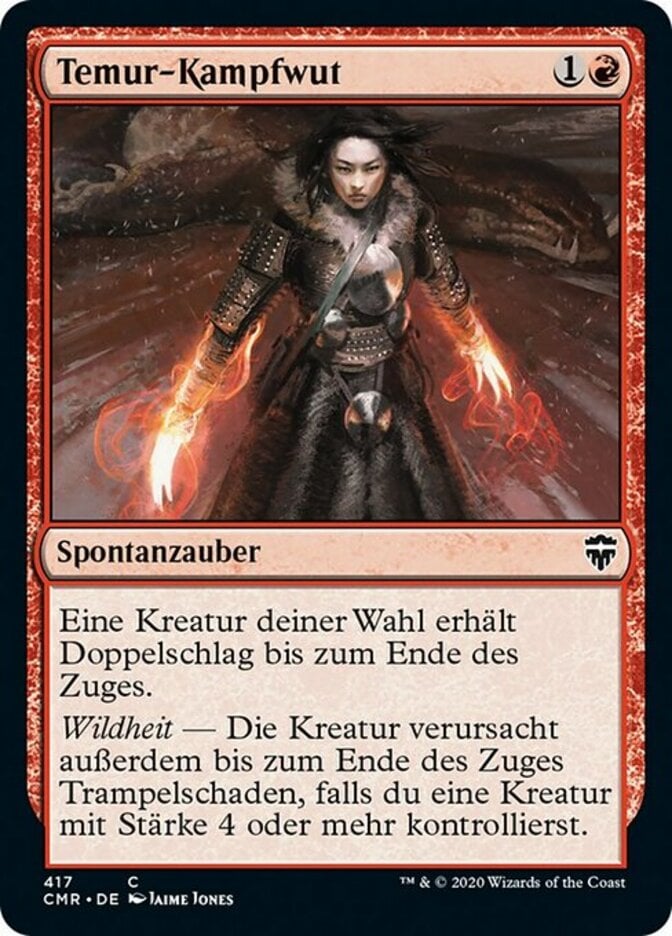 | Rules | Target creature gains double strike until end of turn. Ferocious — That creature also gains trample until end of turn if you control a creature with power 4 or greater. |