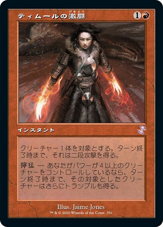| Rules | Target creature gains double strike until end of turn. Ferocious — That creature also gains trample until end of turn if you control a creature with power 4 or greater. |