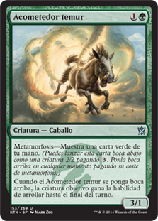 | Rules | Morph—Reveal a green card in your hand. (You may cast this card face down as a 2/2 creature for . Turn it face up any time for its morph cost.) When Temur Charger is turned face up, target creature gains trample until end of turn. |