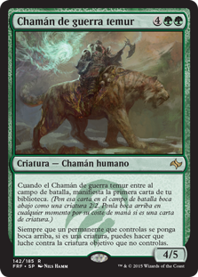 | Rules | When Temur War Shaman enters the battlefield, manifest the top card of your library. (Put that card onto the battlefield face down as a 2/2 creature. Turn it face up any time for its mana cost if it's a creature card.) Whenever a permanent you control is turned face up, if it's a creature, you may have it fight target creature you don't control. |