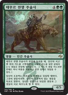 | Rules | When Temur War Shaman enters the battlefield, manifest the top card of your library. (Put that card onto the battlefield face down as a 2/2 creature. Turn it face up any time for its mana cost if it's a creature card.) Whenever a permanent you control is turned face up, if it's a creature, you may have it fight target creature you don't control. |