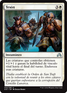| Flavor | Thalia established the Order of Saint Traft in an effort to bring together cathars who would stand against the corruption of the Lunarch Council. |