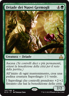 | Rules | Ascend (If you control ten or more permanents, you get the city's blessing for the rest of the game.) At the beginning of each upkeep, create a 1/1 green Saproling creature token. Saprolings you control get +2/+2 as long as you have the city's blessing. |