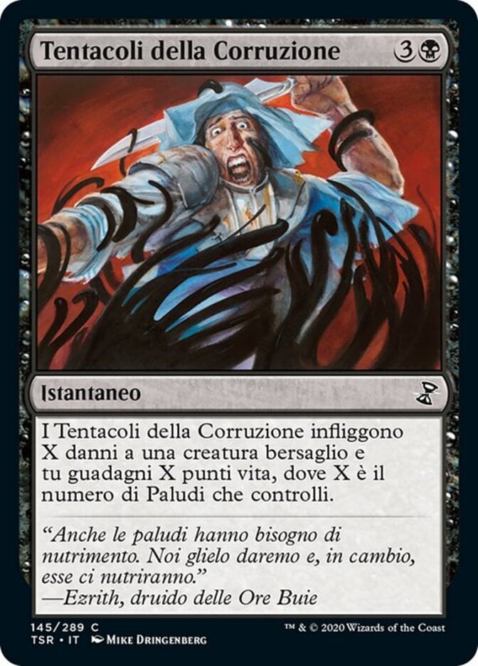 | Rules | Tendrils of Corruption deals X damage to target creature and you gain X life, where X is the number of Swamps you control. |
