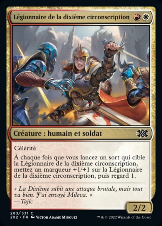 | Rules | Haste Whenever you cast a spell that targets Tenth District Legionnaire, put a +1/+1 counter on Tenth District Legionnaire, then scry 1. |