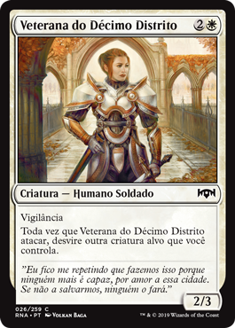 | Rules | Vigilance Whenever Tenth District Veteran attacks, untap another target creature you control. |