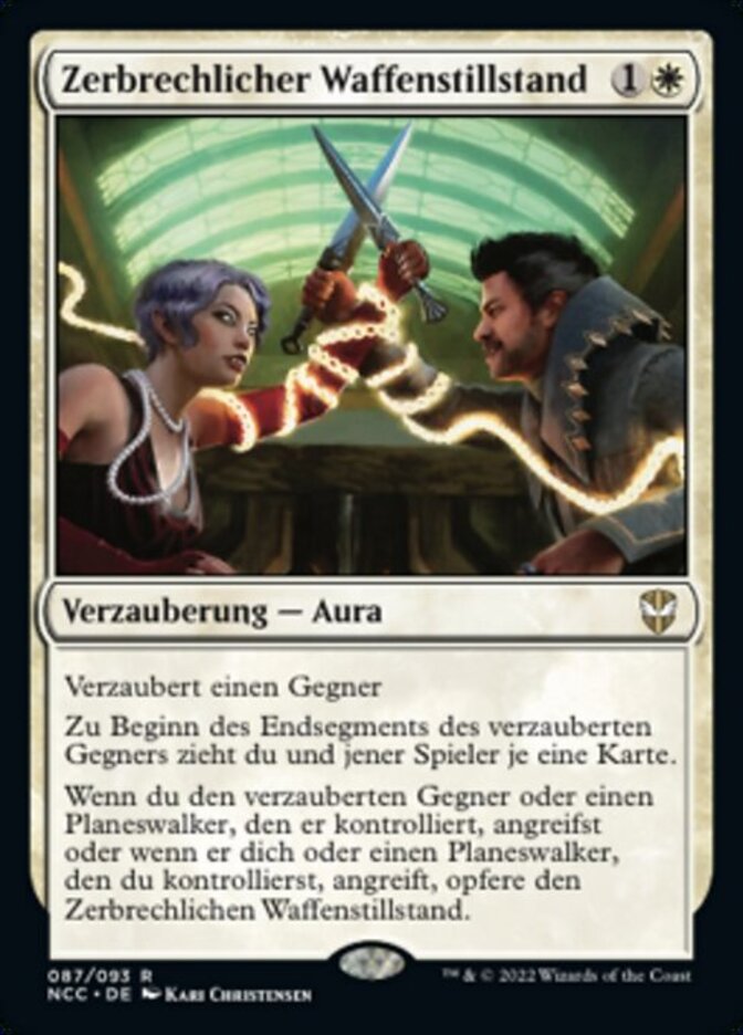 | Rules | Enchant opponent At the beginning of enchanted opponent's end step, you and that player each draw a card. When you attack enchanted opponent or a planeswalker they control or when they attack you or a planeswalker you control, sacrifice Tenuous Truce. |