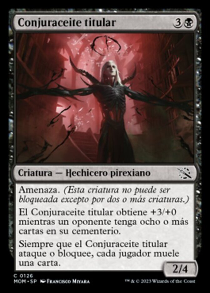 | Rules | Menace (This creature can't be blocked except by two or more creatures.) Tenured Oilcaster gets +3/+0 as long as an opponent has eight or more cards in their graveyard. Whenever Tenured Oilcaster attacks or blocks, each player mills a card. |