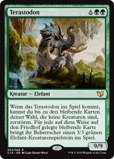 | Rules | When Terastodon enters the battlefield, you may destroy up to three target noncreature permanents. For each permanent put into a graveyard this way, its controller creates a 3/3 green Elephant creature token. |