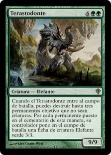 | Rules | When Terastodon enters the battlefield, you may destroy up to three target noncreature permanents. For each permanent put into a graveyard this way, its controller creates a 3/3 green Elephant creature token. |