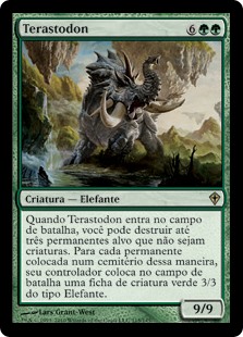 | Rules | When Terastodon enters the battlefield, you may destroy up to three target noncreature permanents. For each permanent put into a graveyard this way, its controller creates a 3/3 green Elephant creature token. |