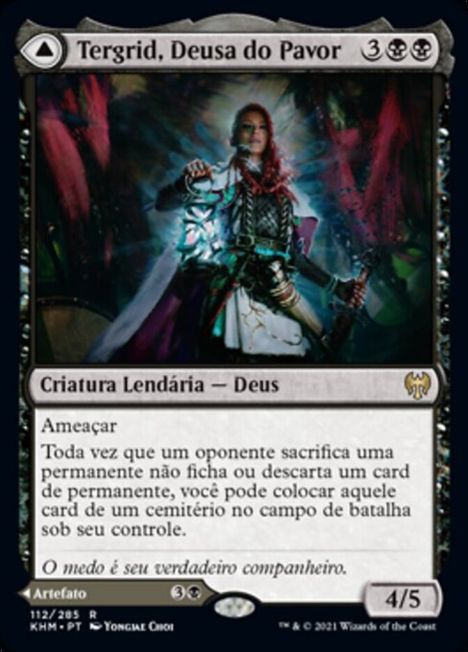 | Rules | Menace Whenever an opponent sacrifices a nontoken permanent or discards a permanent card, you may put that card from a graveyard onto the battlefield under your control. // : Target player loses 3 life unless they sacrifice a nonland permanent or discard a card. : Untap Tergrid's Lantern. |