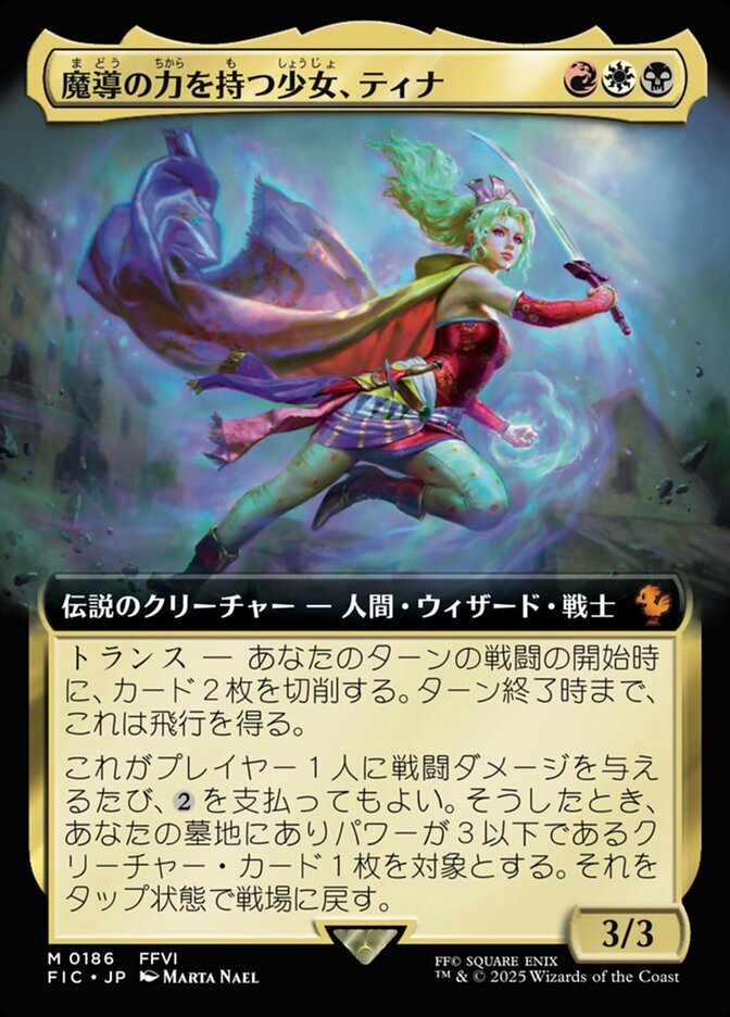 | Rules | Trance — At the beginning of combat on your turn, mill two cards. Terra gains flying until end of turn. Whenever Terra deals combat damage to a player, you may pay . When you do, return target creature card with power 3 or less from your graveyard to the battlefield tapped. |