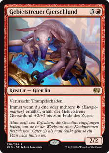 | Rules | Trample Whenever you get one or more (energy counters), Territorial Gorger gets +2/+2 until end of turn. |