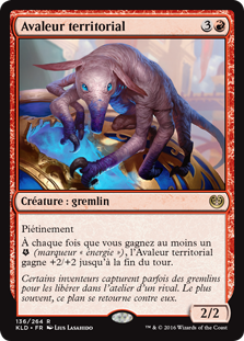 | Rules | Trample Whenever you get one or more (energy counters), Territorial Gorger gets +2/+2 until end of turn. |