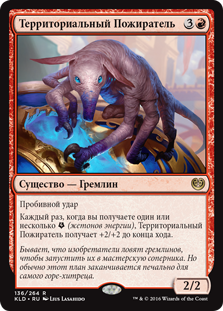 | Rules | Trample Whenever you get one or more (energy counters), Territorial Gorger gets +2/+2 until end of turn. |