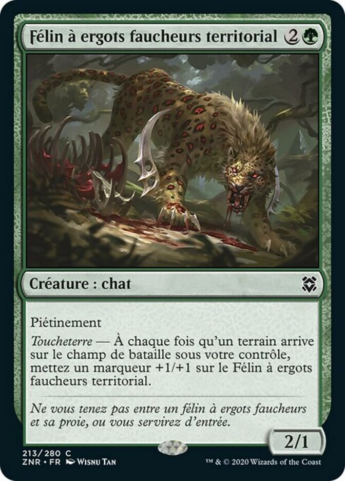 | Rules | Trample Landfall — Whenever a land enters the battlefield under your control, put a +1/+1 counter on Territorial Scythecat. |
