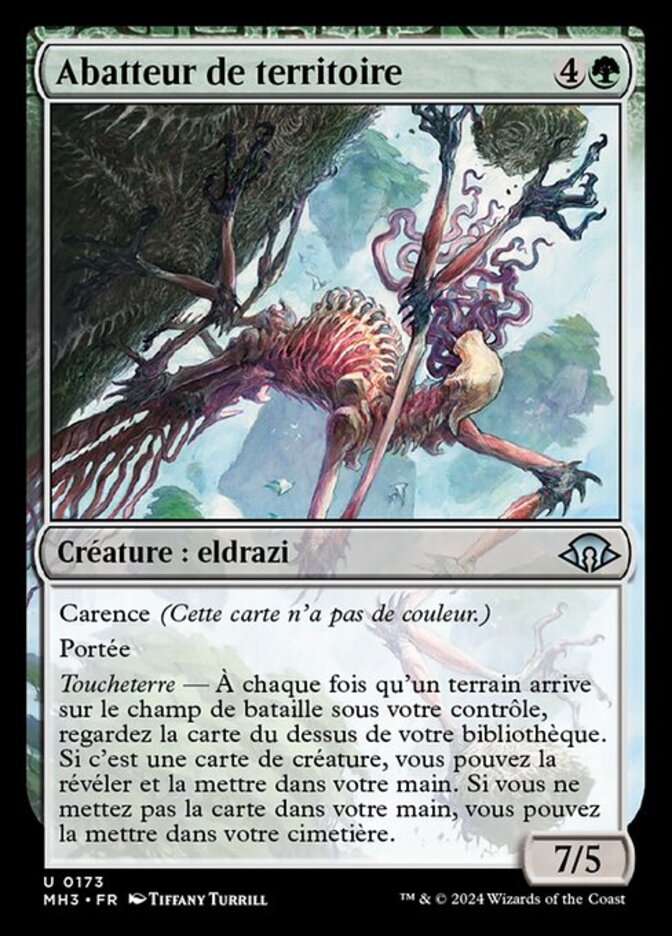 | Rules | Devoid (This card has no color.) Reach Landfall — Whenever a land enters the battlefield under your control, look at the top card of your library. If it's a creature card, you may reveal it and put it into your hand. If you don't put the card into your hand, you may put it into your graveyard. |