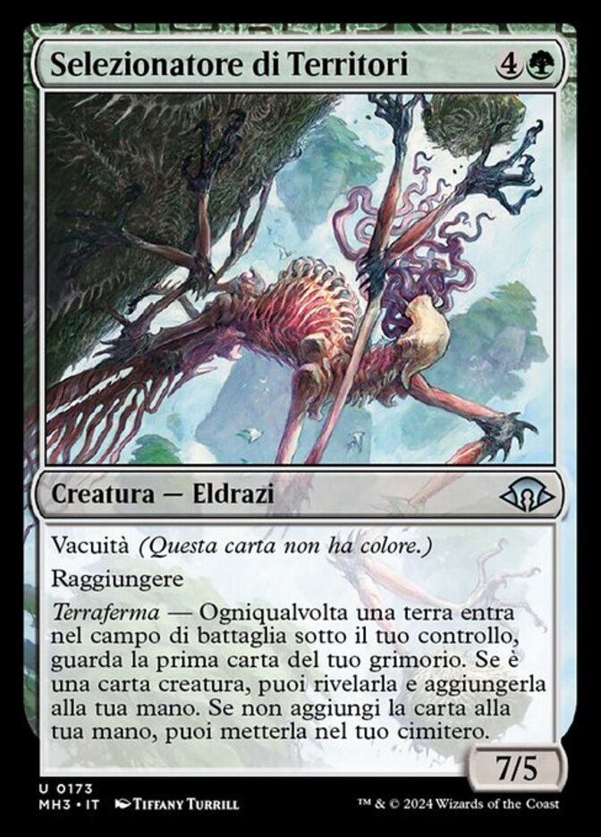 | Rules | Devoid (This card has no color.) Reach Landfall — Whenever a land enters the battlefield under your control, look at the top card of your library. If it's a creature card, you may reveal it and put it into your hand. If you don't put the card into your hand, you may put it into your graveyard. |