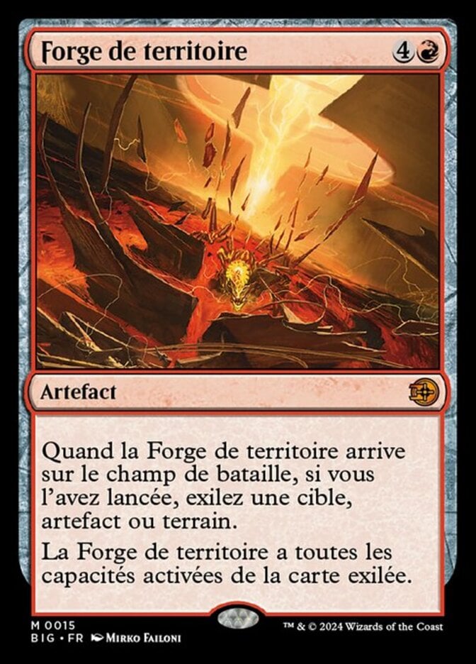 | Rules | When Territory Forge enters the battlefield, if you cast it, exile target artifact or land. Territory Forge has all activated abilities of the exiled card. |