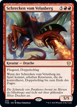| Rules | Flying, double strike When Terror of Mount Velus enters the battlefield, creatures you control gain double strike until end of turn. |