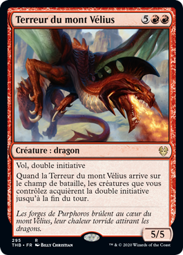 | Rules | Flying, double strike When Terror of Mount Velus enters the battlefield, creatures you control gain double strike until end of turn. |
