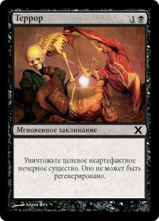 | Rules | Destroy target nonartifact, nonblack creature. It can't be regenerated. |