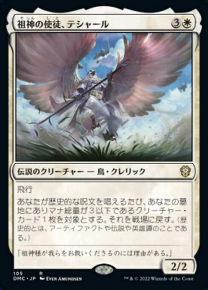 | Rules | Flying Whenever you cast a historic spell, return target creature card with mana value 3 or less from your graveyard to the battlefield. (Artifacts, legendaries, and Sagas are historic.) |