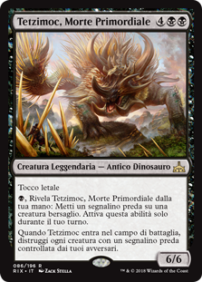 | Rules | Deathtouch , Reveal Tetzimoc, Primal Death from your hand: Put a prey counter on target creature. Activate only during your turn. When Tetzimoc enters the battlefield, destroy each creature your opponents control with a prey counter on it. |
