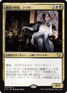 | Rules | Vigilance, protection from creatures Whenever a creature deals combat damage to you, destroy that creature. Create a 1/1 white and black Spirit creature token with flying. |