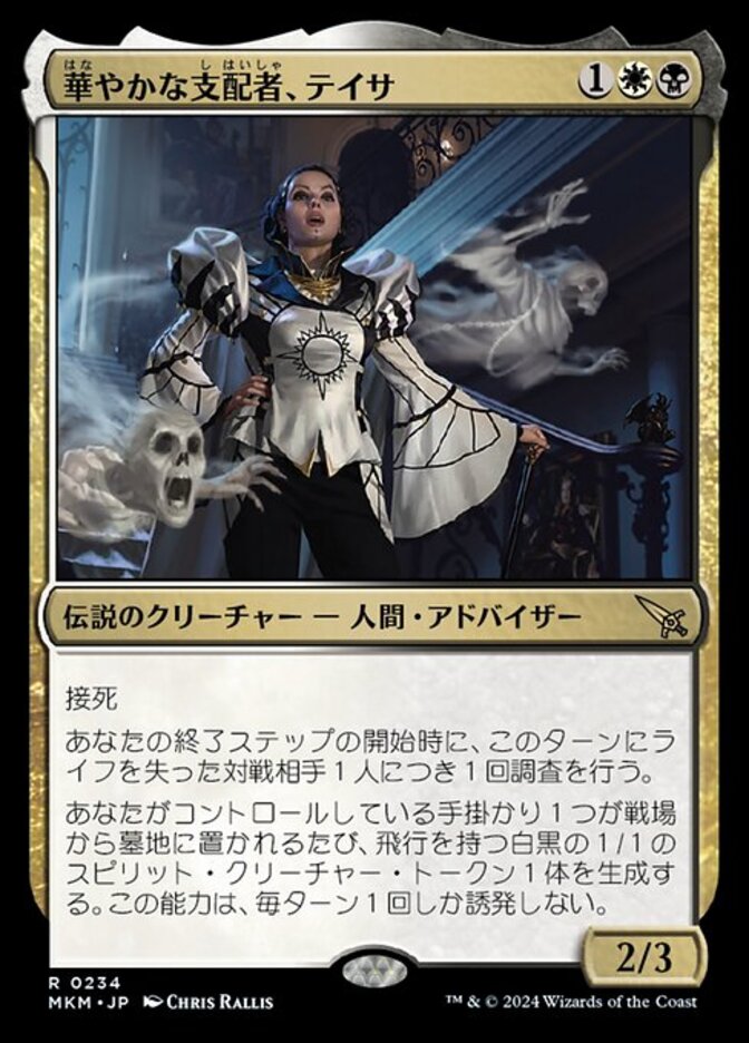 | Rules | Deathtouch At the beginning of your end step, investigate for each opponent who lost life this turn. Whenever a Clue you control is put into a graveyard from the battlefield, create a 1/1 white and black Spirit creature token with flying. This ability triggers only once each turn. |