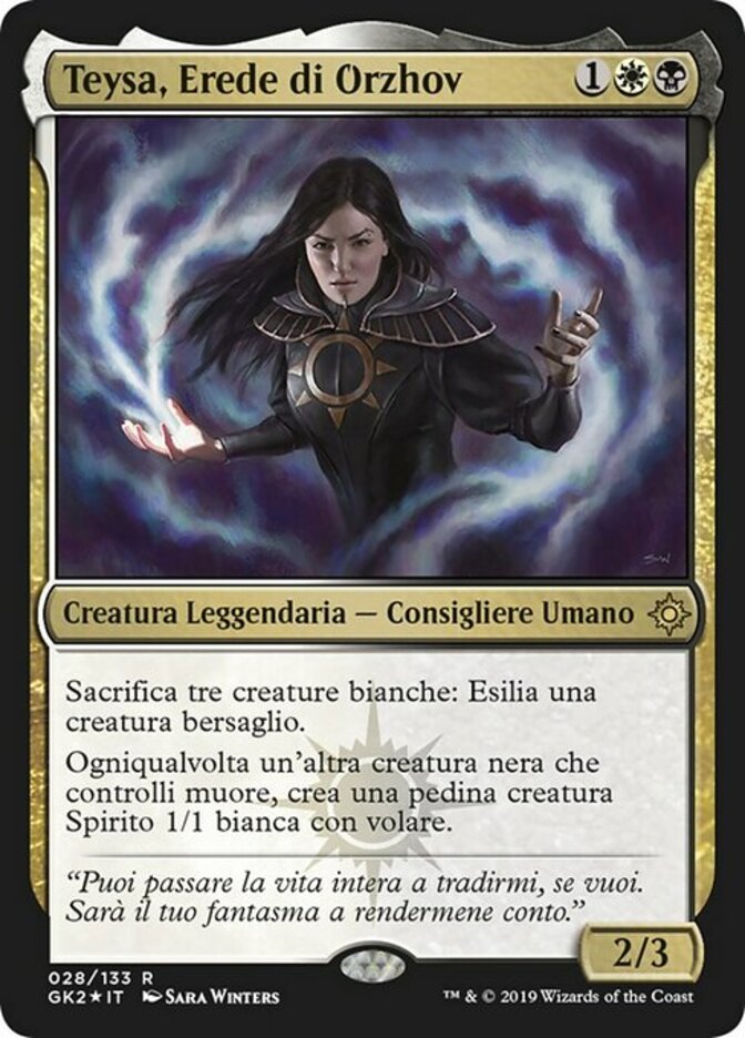 | Rules | Sacrifice three white creatures: Exile target creature. Whenever another black creature you control dies, create a 1/1 white Spirit creature token with flying. |
