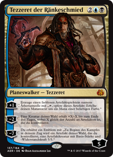 | Rules | +1: Create a colorless artifact token named Etherium Cell with ", Sacrifice this artifact: Add one mana of any color." −2: Target creature gets +X/-X until end of turn, where X is the number of artifacts you control. −7: You get an emblem with "At the beginning of combat on your turn, target artifact you control becomes an artifact creature with base power and toughness 5/5." |