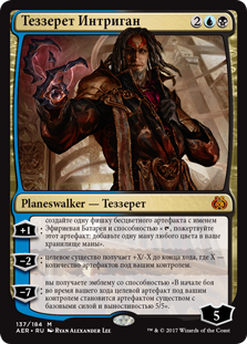 | Rules | +1: Create a colorless artifact token named Etherium Cell with ", Sacrifice this artifact: Add one mana of any color." −2: Target creature gets +X/-X until end of turn, where X is the number of artifacts you control. −7: You get an emblem with "At the beginning of combat on your turn, target artifact you control becomes an artifact creature with base power and toughness 5/5." |