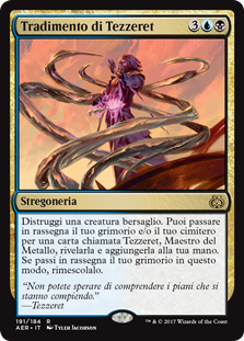 | Rules | Destroy target creature. You may search your library and/or graveyard for a card named Tezzeret, Master of Metal, reveal it, and put it into your hand. If you search your library this way, shuffle. |