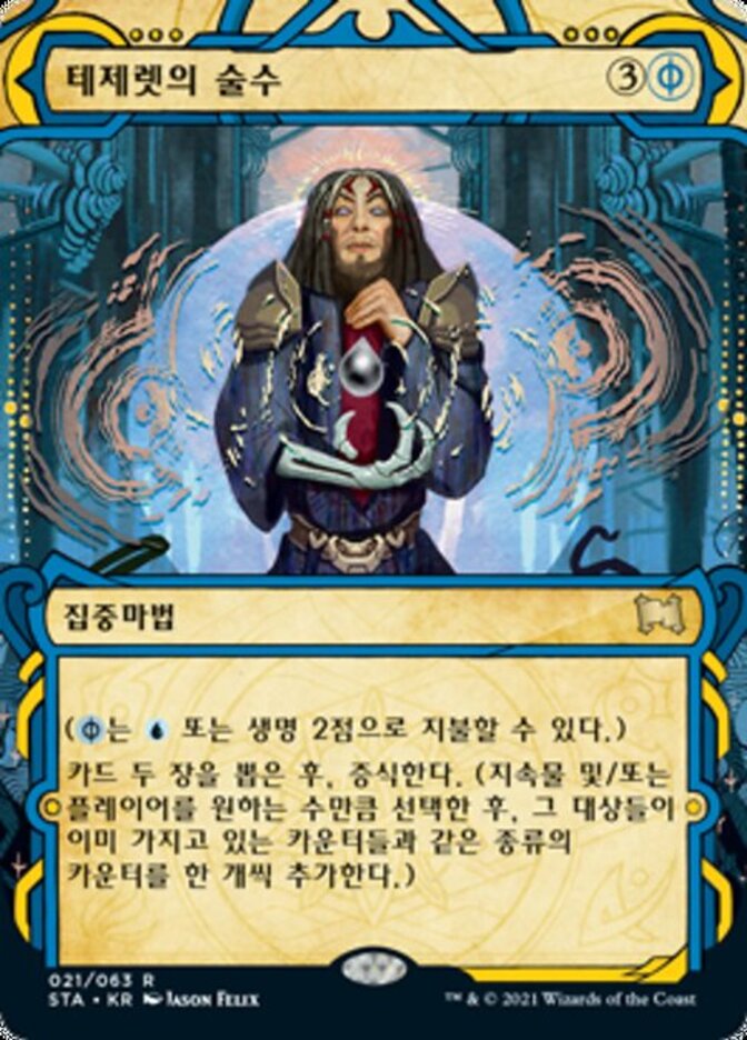 Languages Tezzeret's Gambit 泰兹瑞的计策 Tezzerets Gambit Гамбит Теззерета 泰茲瑞的計策 Pari de Tezzeret テゼレットの計略 Estratagema de Tezzeret 테제렛의 술수 Táctica de Tezzeret Mossa di Tezzeret