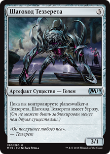 | Rules | As long as you control a Tezzeret planeswalker, Tezzeret's Strider has menace. (It can't be blocked except by two or more creatures.) |
