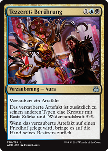 | Rules | Enchant artifact Enchanted artifact is a creature with base power and toughness 5/5 in addition to its other types. When enchanted artifact is put into a graveyard, return that card to its owner's hand. |