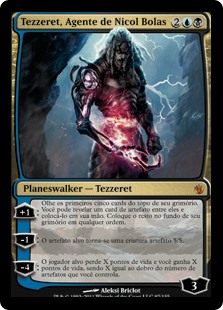 | Rules | +1: Look at the top five cards of your library. You may reveal an artifact card from among them and put it into your hand. Put the rest on the bottom of your library in any order. −1: Target artifact becomes an artifact creature with base power and toughness 5/5. −4: Target player loses X life and you gain X life, where X is twice the number of artifacts you control. |