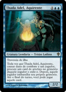 | Rules | Islandwalk (This creature can't be blocked as long as defending player controls an Island.) Whenever Thada Adel, Acquisitor deals combat damage to a player, search that player's library for an artifact card and exile it. Then that player shuffles. Until end of turn, you may play that card. |