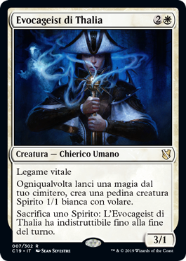 | Rules | Lifelink Whenever you cast a spell from your graveyard, create a 1/1 white Spirit creature token with flying. Sacrifice a Spirit: Thalia's Geistcaller gains indestructible until end of turn. |